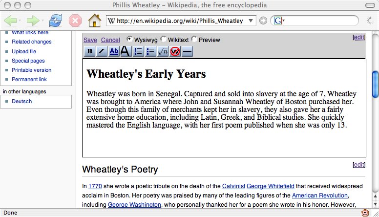 Using Greasemonkey again, we were able to Wikiwygify wikipedia.org!