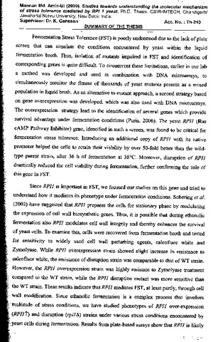 Mannan, M Amin-ul (2009) tudies towards understanding the molecular mechanism of stress tolerance mediated by RPI 1 yeast. PhD thesis, CSIR-IMTECH, Chandigarh/ Jawaharlal Nehru University, New Delhi: India..