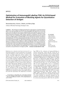 Ramandeep, K and Dikshit, Kanak L and Raje, Manoj (2001) Optimization of immunogold labeling TEM. An ELISA-based method for rapid and convenient simulation of processing conditions for quantitative detection of antigen. The journal of histochemistry and cytochemistry : official journal of the Histochemistry Society, 49 (3). pp. 355-68. ISSN 0022-1554