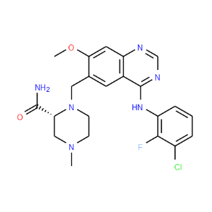 | IUPAC Name | (2R)-1-({4-[(3-chloro-2-fluorophenyl)amino]-7-methoxyquinazolin-6-yl}methyl)-4-methylpiperazine-2-carboxamide |