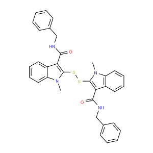| IUPAC Name | N-benzyl-2-{[3-(benzylcarbamoyl)-1-methyl-1H-indol-2-yl]disulfanyl}-1-methyl-1H-indole-3-carboxamide |