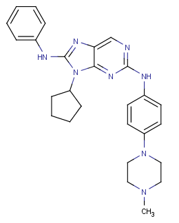 | IUPAC Name | 9-Cyclopentyl-N2-(4-(4-methylpiperazin-1-yl)phenyl)-N8-phenyl-9H-purine-2,8-diamine |