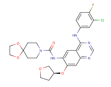 | IUPAC Name | (S)-N-(4-(3-Chloro-4-fluorophenylamino)-7-(tetrahydrofuran-3-yloxy)quinazolin-6-yl)-1,4-dioxa-8-azaspiro[4.5]decane-8-carboxamide |
