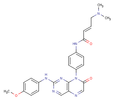 | IUPAC Name | (2E)‐4‐(dimethylamino)‐N‐(4‐{2‐[(4‐methoxyphenyl)amino]‐7‐oxo‐7,8‐dihydropteridin‐8‐yl}phenyl)but‐2‐enamide |