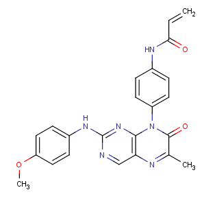 | IUPAC Name | N‐(4‐{2‐[(4‐methoxyphenyl)amino]‐6‐methyl‐7‐oxo‐7,8‐dihydropteridin‐8‐yl}phenyl)prop‐2‐enamide |