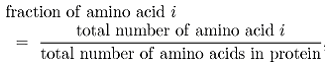 Amino acid composition is the fraction of each amino acid in a protein. The fraction of all 20 natural amino acids was calculated using the following equation: