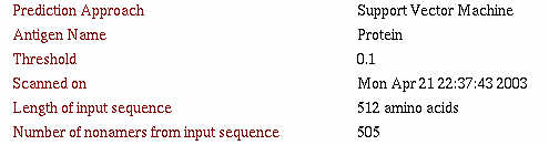 TheHLA-DR4Pred is an SVM and ANN based HLA-DRB1*0401(MHC class II alleles) binding peptides prediction method. The accuracy of the SVM and ANN based methods is ~86% and ~78% respectively.The performence of the methods was tested through 5 set cross-validation. The training of SVM and ANN was done by using the freely availaible SVM_LIGHT and SNNS packages respectively. The data for training of neural network and SVM model has been extracted from MHCBN database.This method will be useful in cellular immunology, Vaccine design, immunodiagnostics, immunotherapeuatics and molecular understanding of autoimmune susceptibility. |