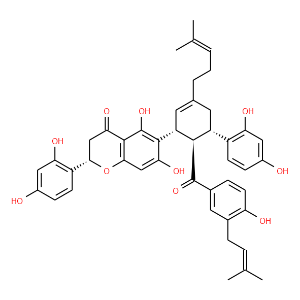 SMILESO=C([C@@H]1[C@H](CC(=C[C@H]1c1c(O)c2c(OC(CC2=O)c2c(O)cc(O)cc2)cc1O)CCC=C(C)C)c1c(O)cc(O)cc1)c1cc(c(O)cc1)CC=C(C)C